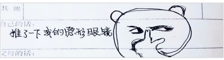 家校联系本上学生的留言“推了一下我的隐形眼镜” 受访者供图
