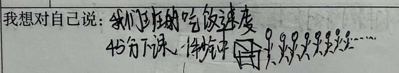 “父母告诉我要多吃苦,在我的努力下,做到了前三个字‘要多吃’,完成率75%。”