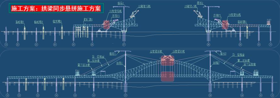 5.拱梁同步施工:国内最大悬臂长度(218m)悬拼工艺,创新合拢策略,缩短工期、规避台风季风险。